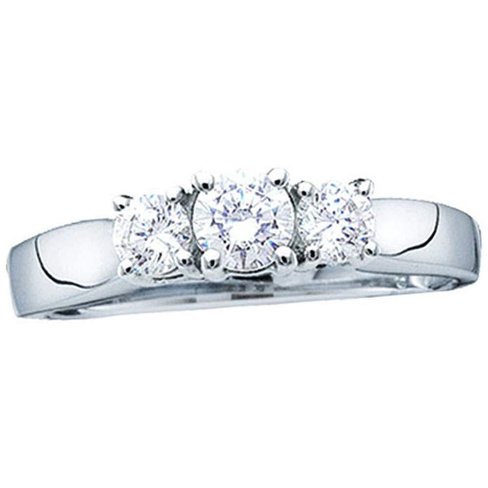 14kt White Gold Round Diamond 3-stone Bridal Wedding Engagement Ring 1 Cttw