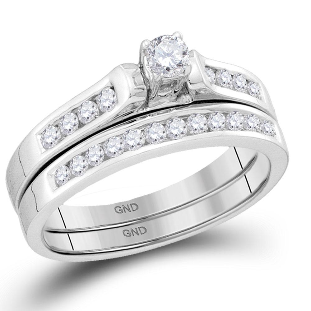 14kt White Gold Round Diamond Bridal Wedding Ring Band Set 1/2 Cttw