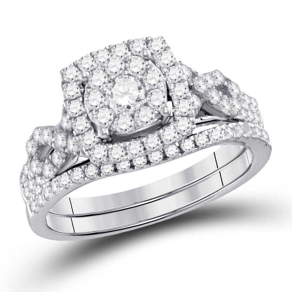 14kt White Gold Round Diamond Bridal Wedding Ring Band Set 1 Cttw
