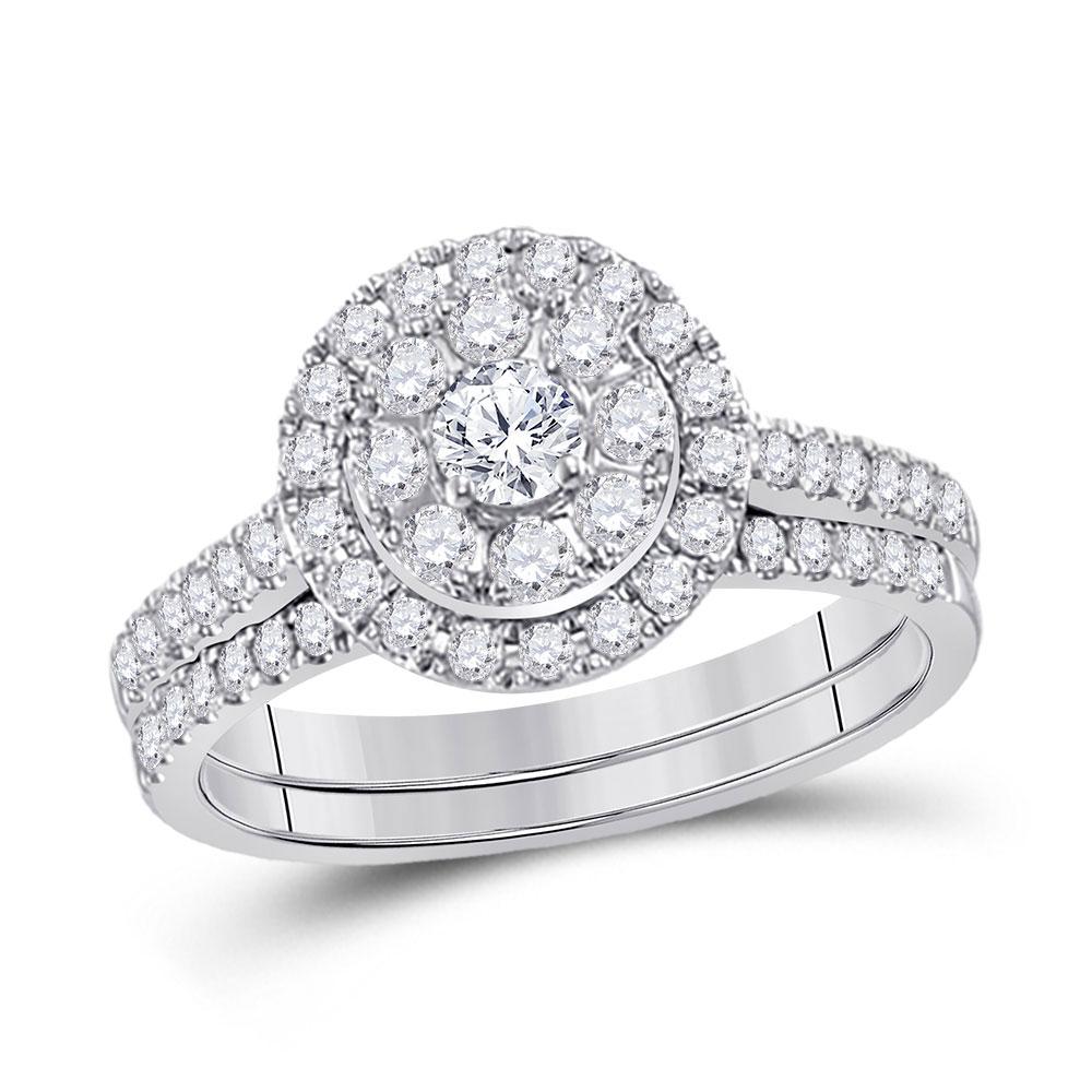 14kt White Gold Round Diamond Bridal Wedding Ring Band Set 1 Cttw
