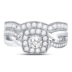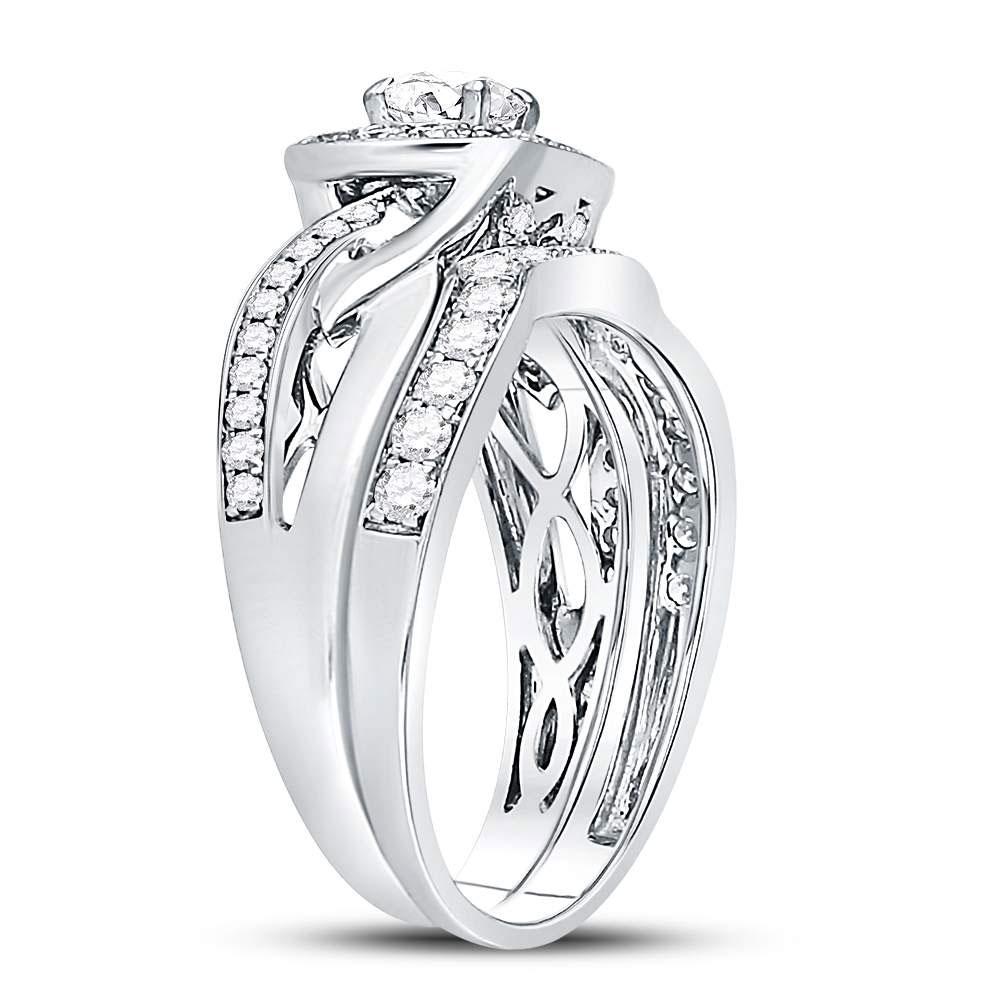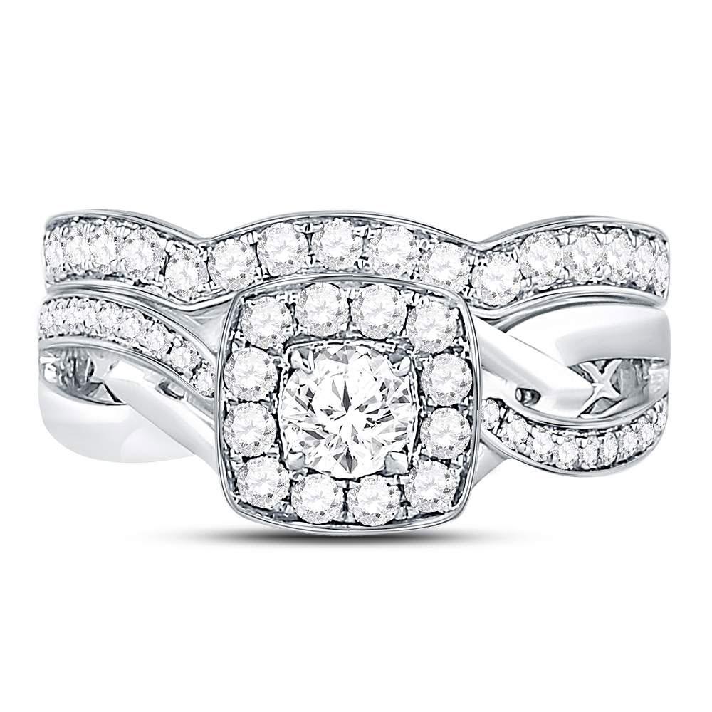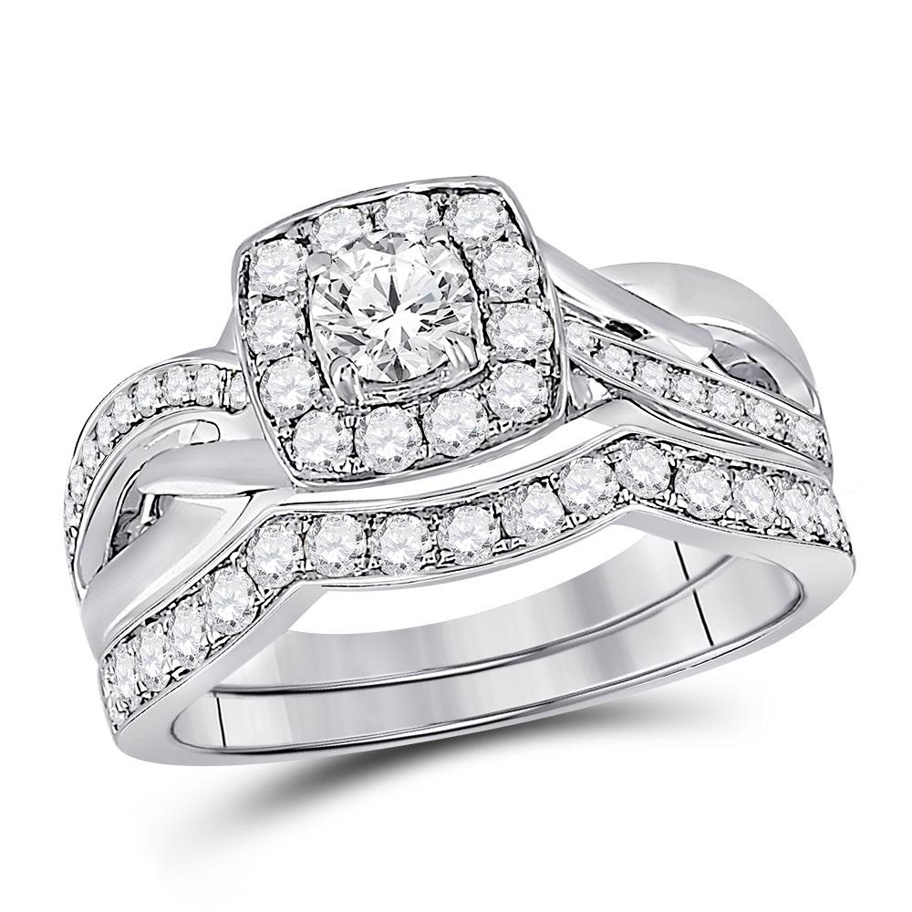 14kt White Gold Round Diamond Bridal Wedding Ring Band Set 1 Cttw