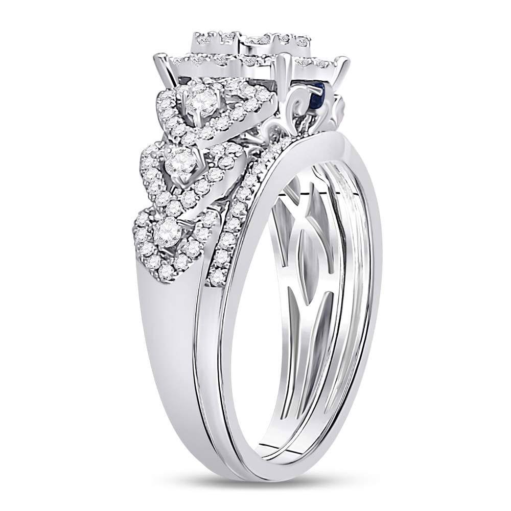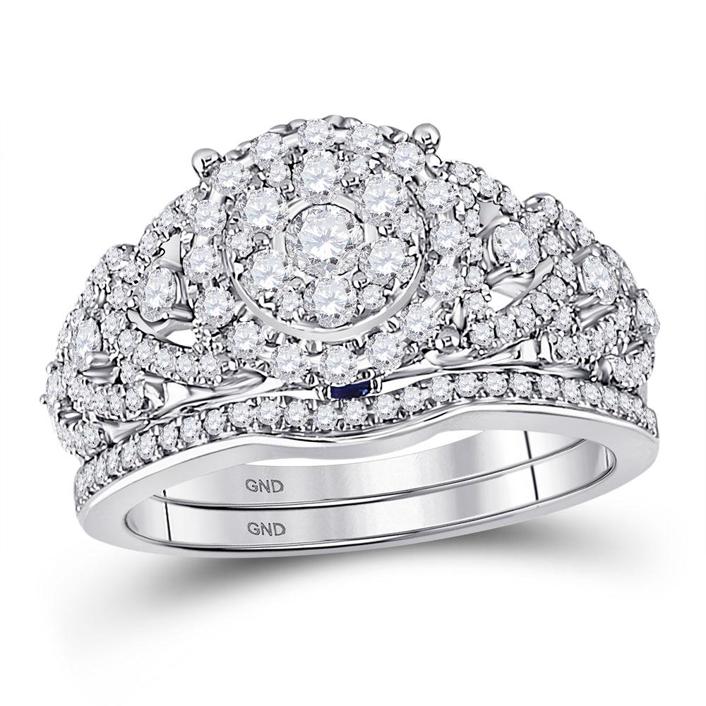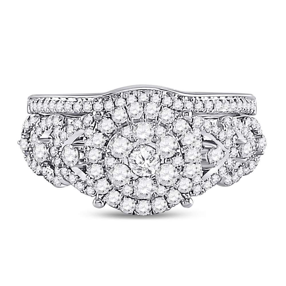 14kt White Gold Round Diamond Bridal Wedding Ring Band Set 1 Cttw