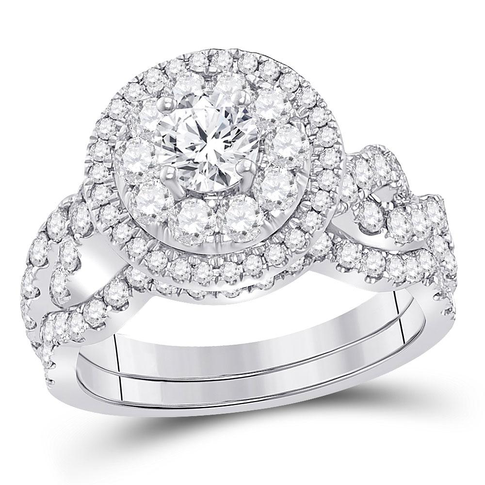 14kt White Gold Round Diamond Bridal Wedding Ring Band Set 2 Cttw