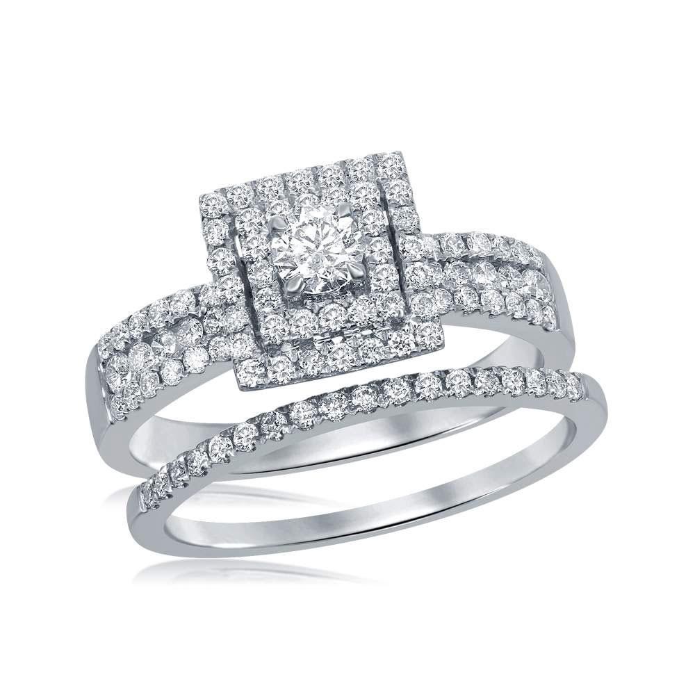 14kt White Gold Round Diamond Bridal Wedding Ring Band Set 7/8 Cttw