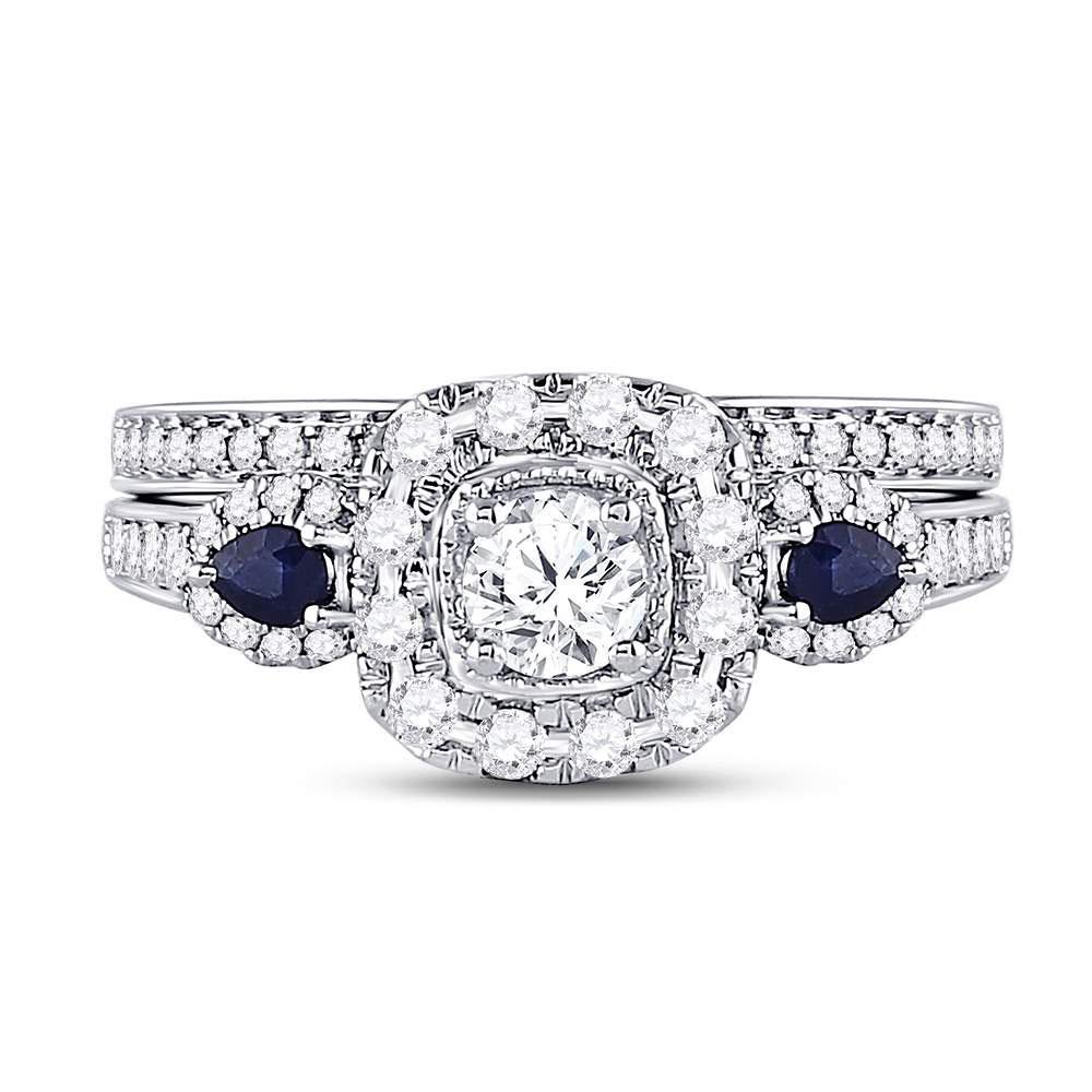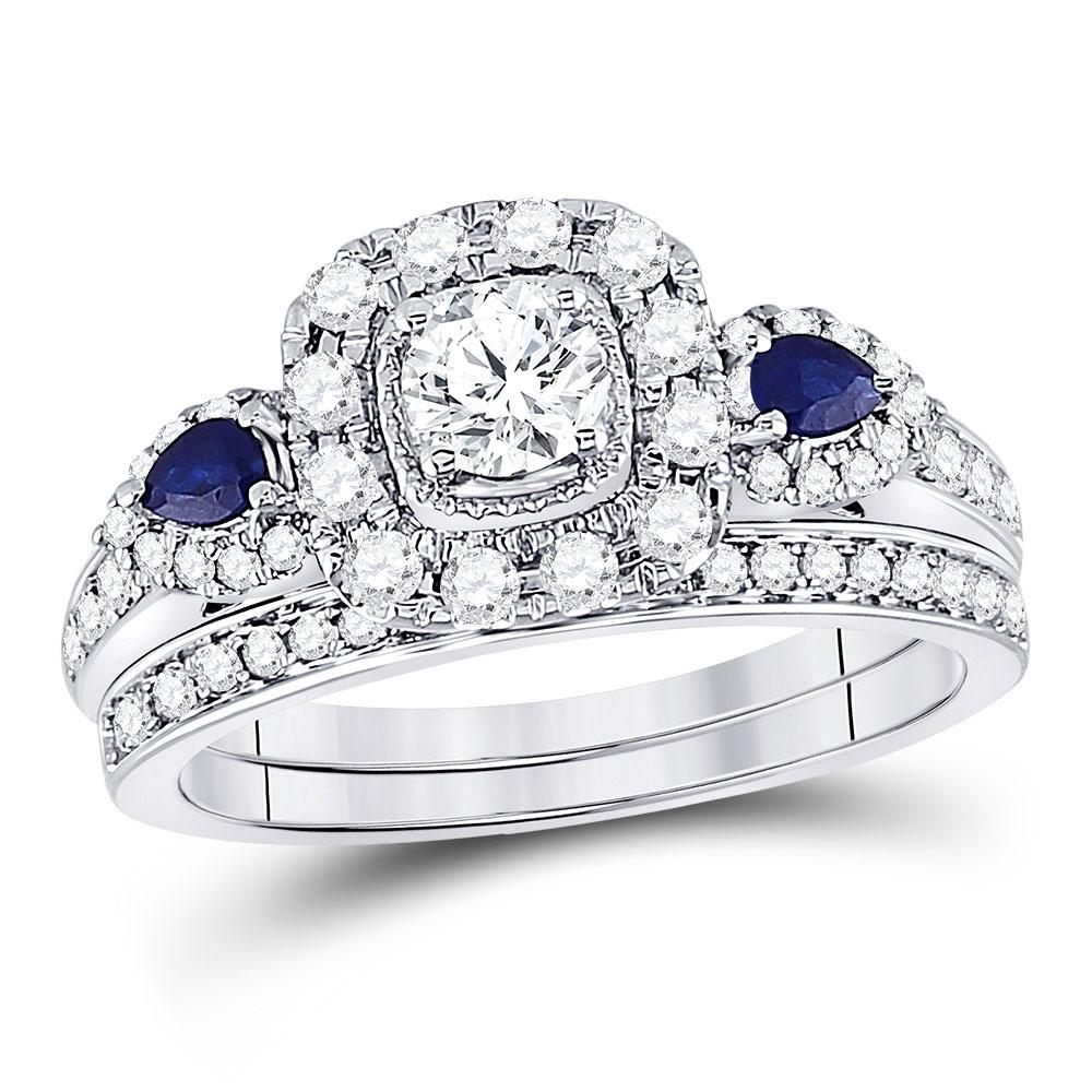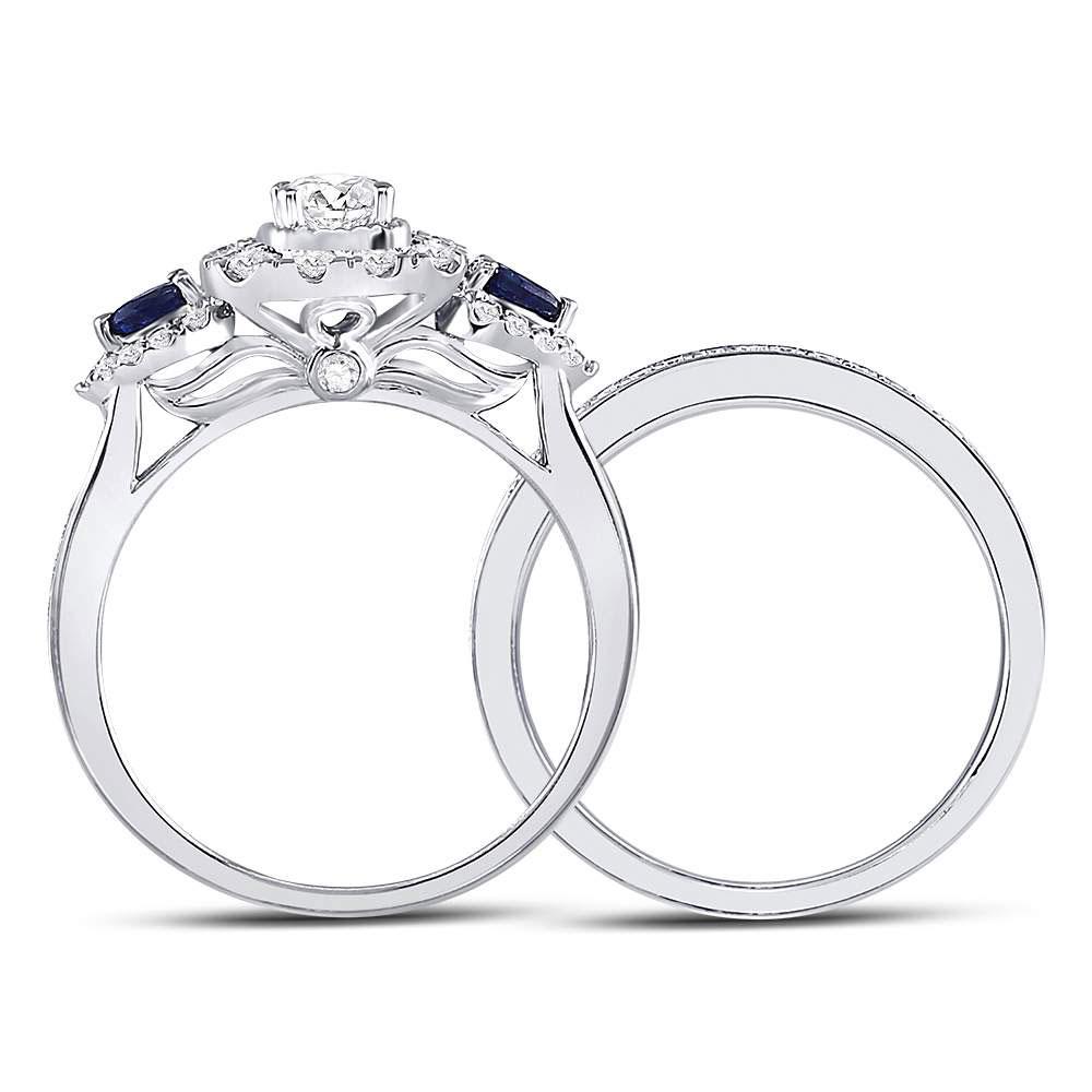 14kt White Gold Round Diamond Bridal Wedding Ring Band Set 7/8 Cttw
