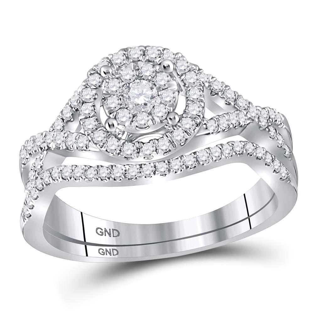 14kt White Gold Round Diamond Cluster Bridal Wedding Ring Band Set 1/2 Cttw