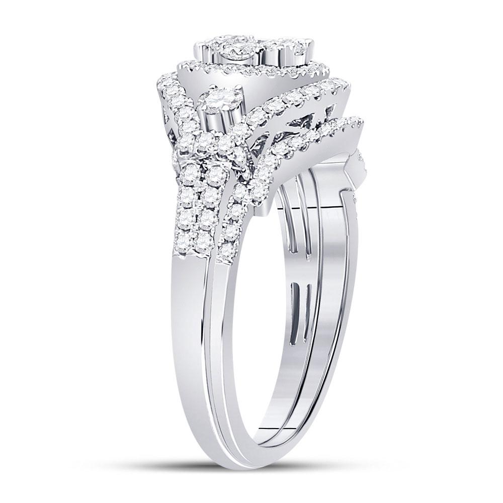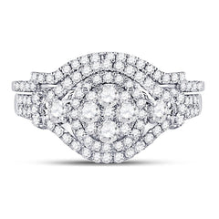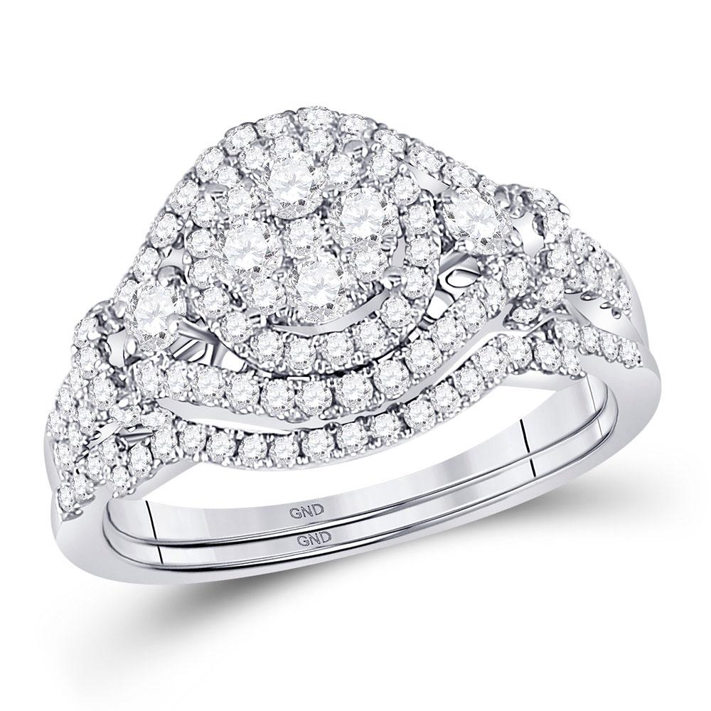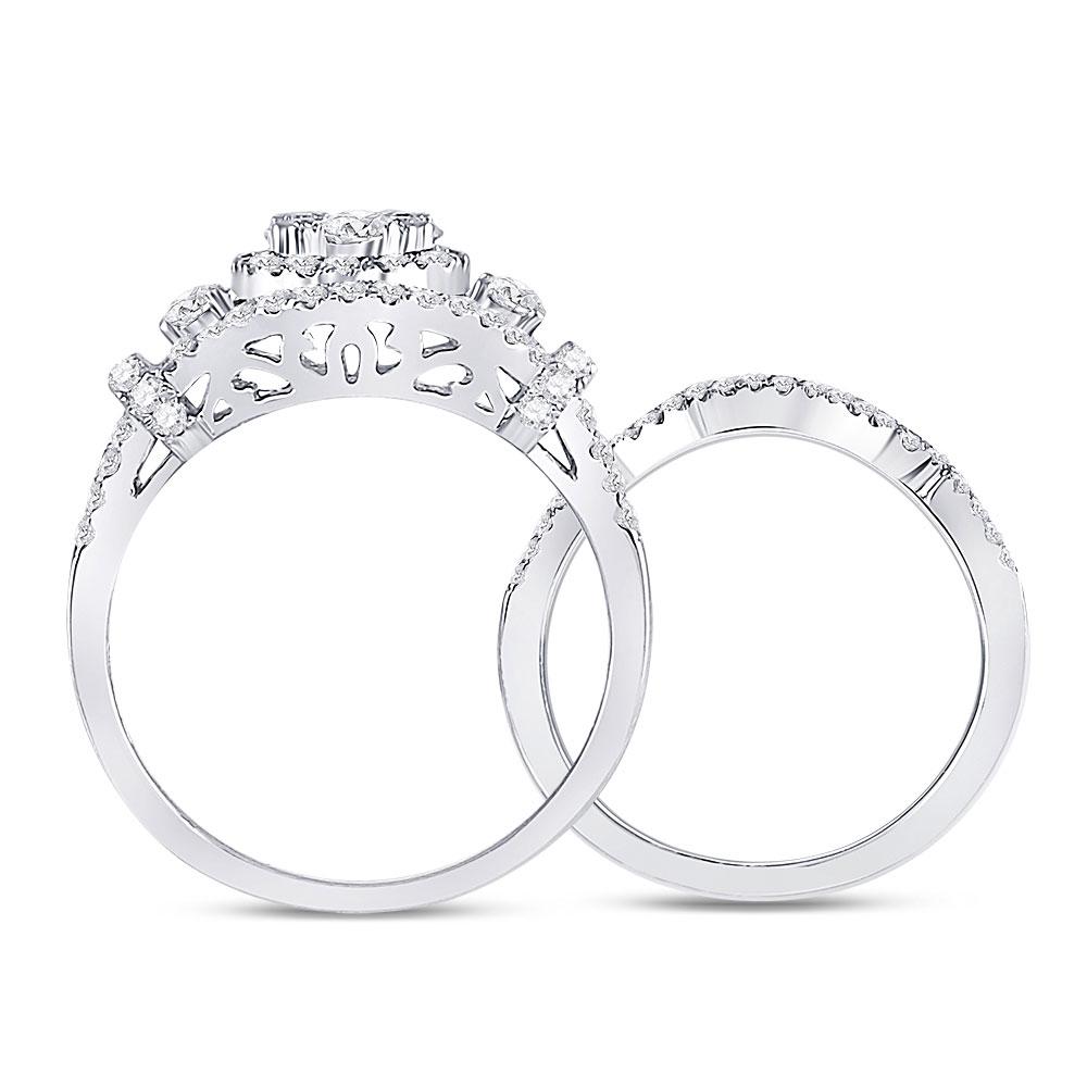 14kt White Gold Round Diamond Cluster Bridal Wedding Ring Band Set 1 Cttw