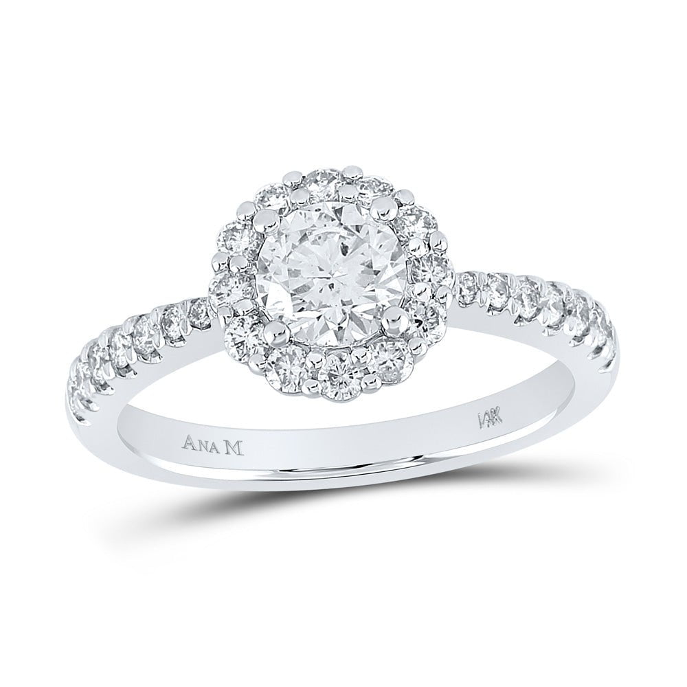 14kt White Gold Round Diamond Halo Bridal Wedding Engagement Ring 1-1/5 Cttw