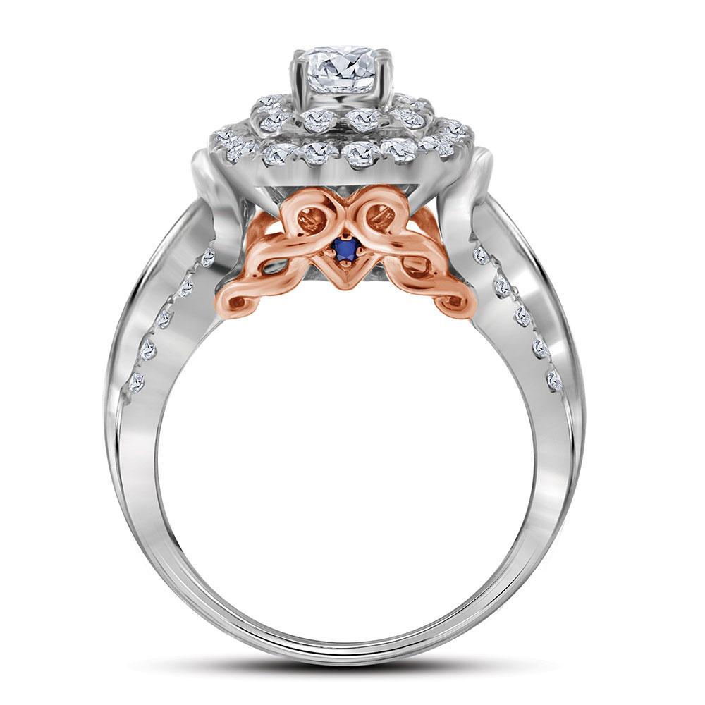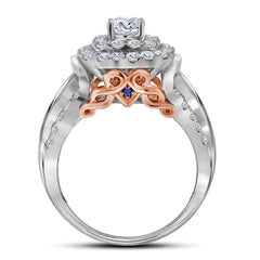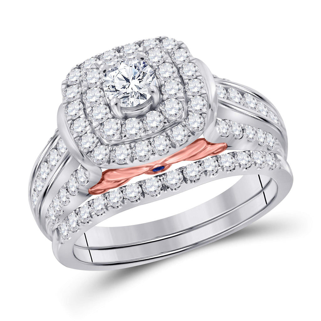14kt White Gold Round Diamond Halo Bridal Wedding Ring Band Set 2 Cttw