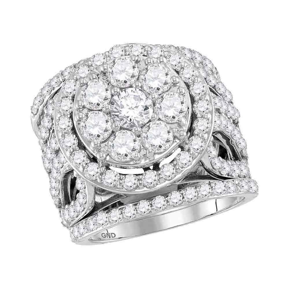 14kt White Gold Round Diamond Halo Bridal Wedding Ring Band Set 4 Cttw