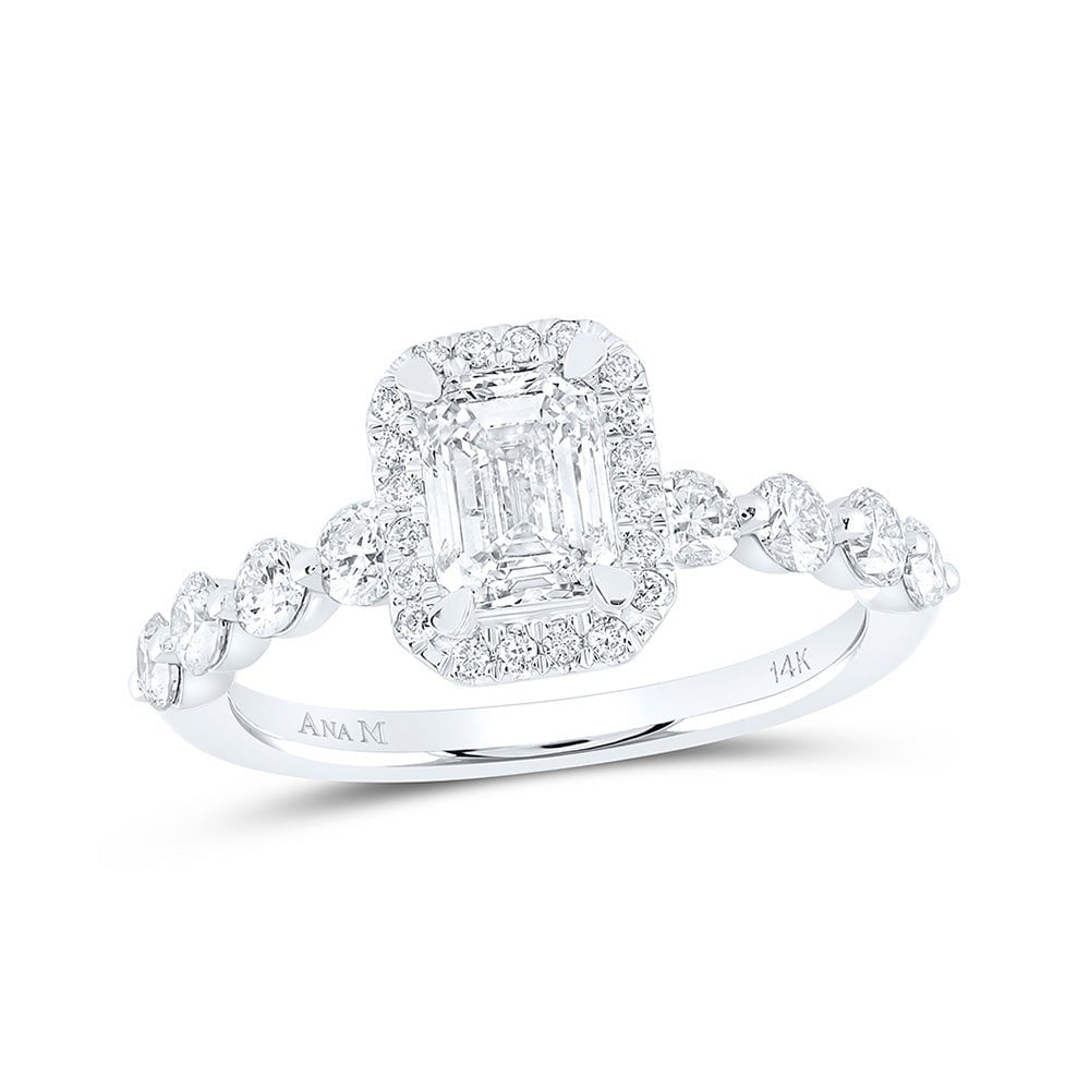 14kt White Gold Emerald Diamond Halo Bridal Wedding Engagement Ring 1-3/4 Cttw