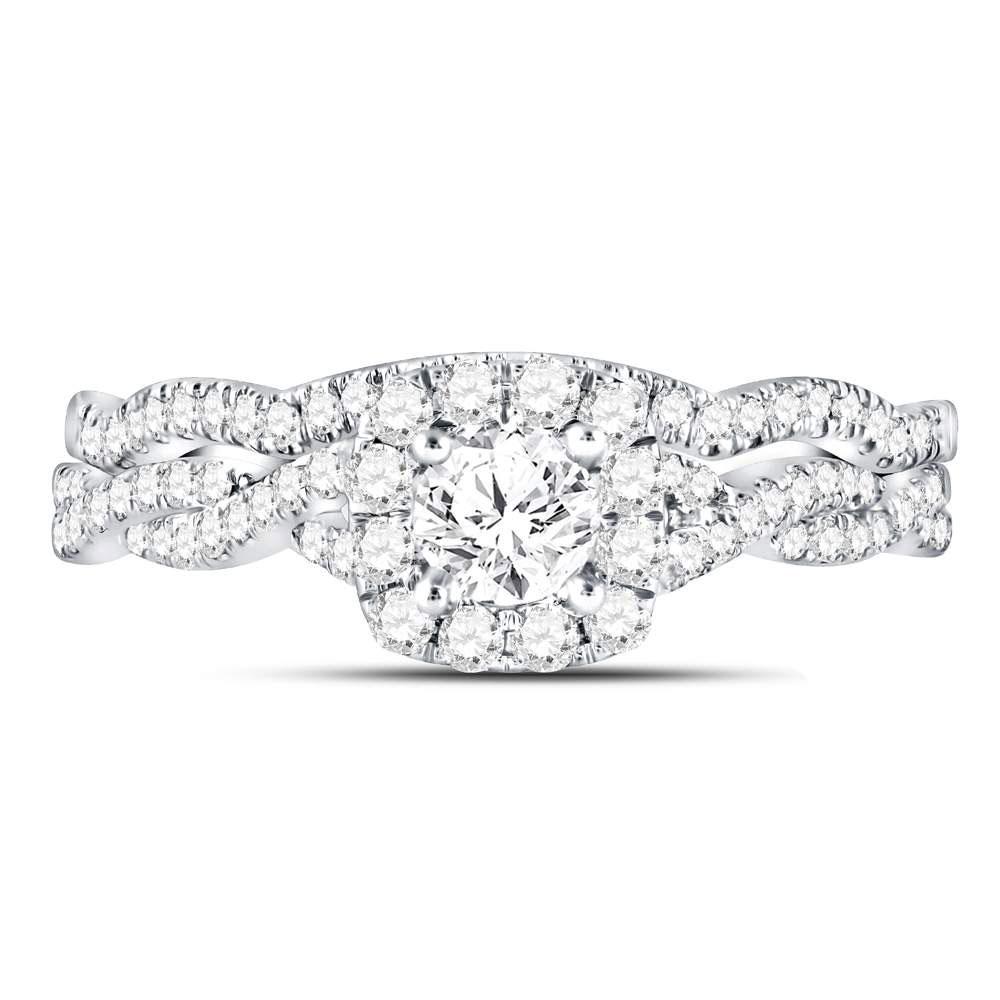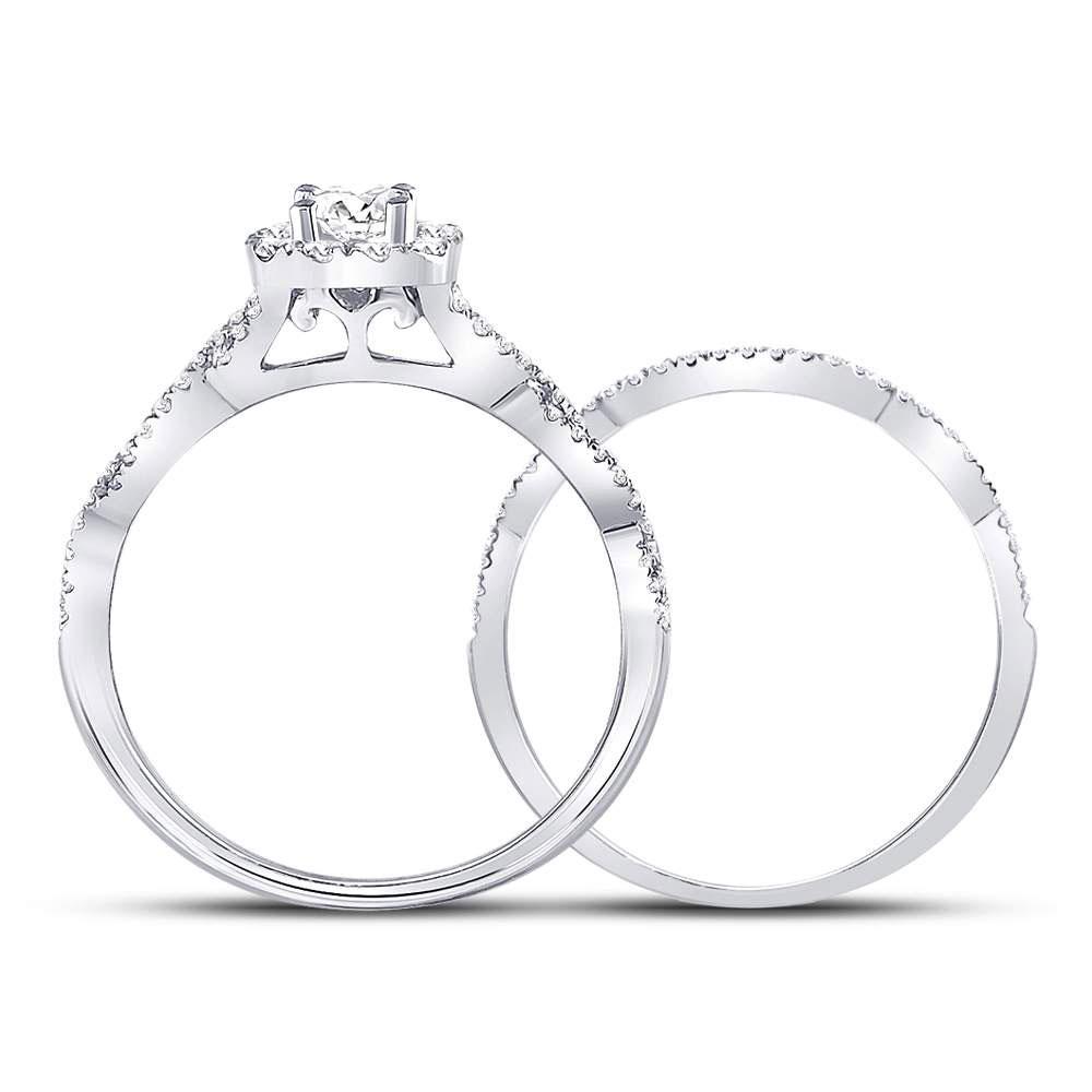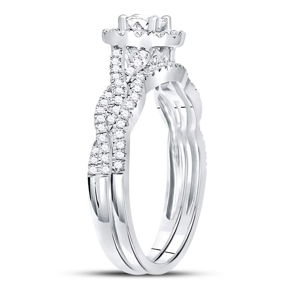 14kt White Gold Round Diamond Twist Bridal Wedding Ring Band Set 5/8 Cttw
