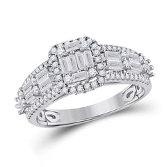 14kt White Gold Womens Baguette Diamond Square Fashion Ring 1 Cttw