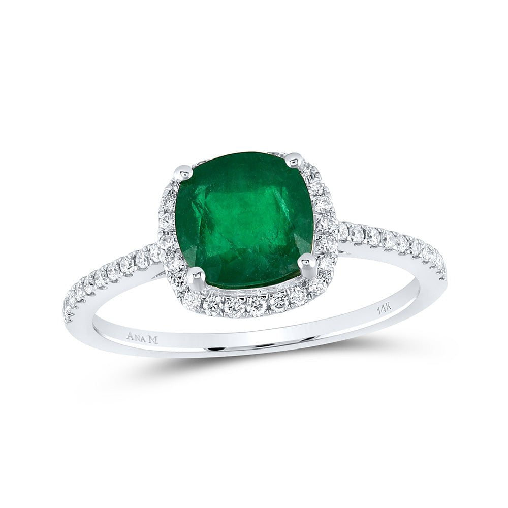 14kt White Gold Womens Cushion Emerald Diamond Halo Ring 1-7/8 Cttw