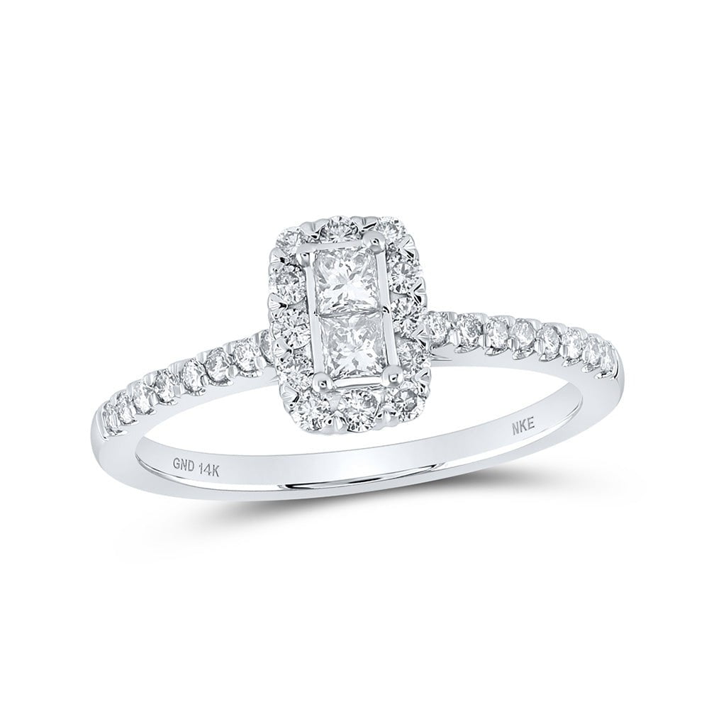 14kt White Gold Womens Princess Diamond 2-stone Ring 1/2 Cttw