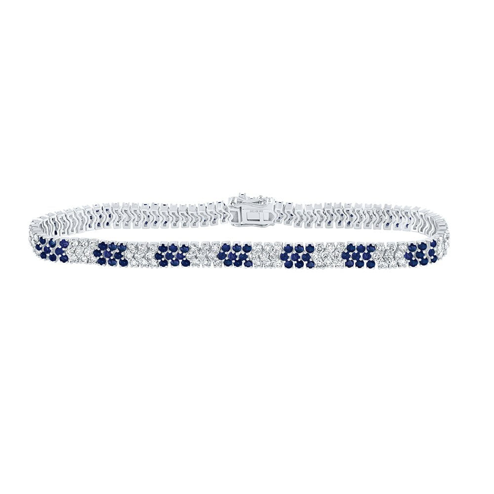 14kt White Gold Womens Round Blue Sapphire Diamond Tennis Bracelet 6 Cttw