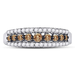 14kt White Gold Womens Round Brown Diamond Band Ring 1/2 Cttw