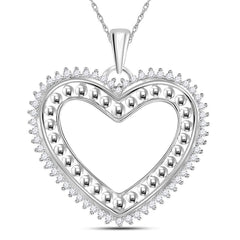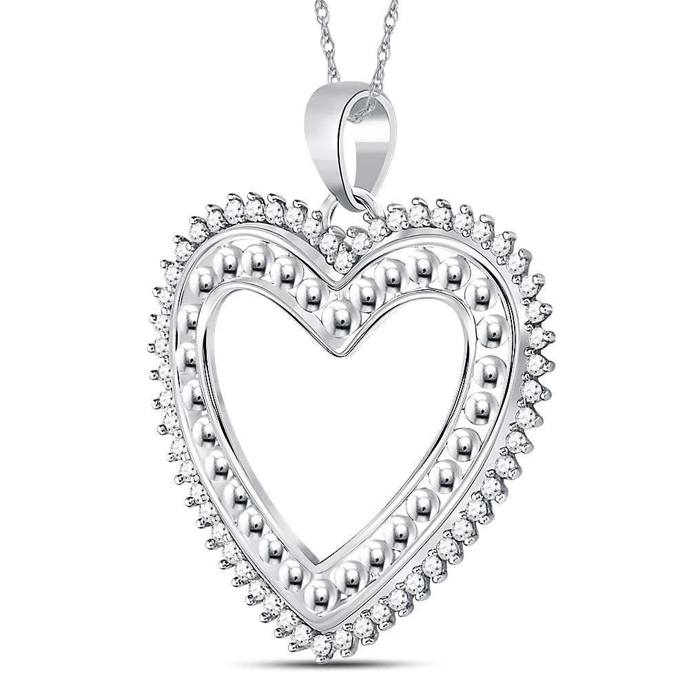 14kt White Gold Womens Round Diamond Beaded Heart Pendant 1/4 Cttw