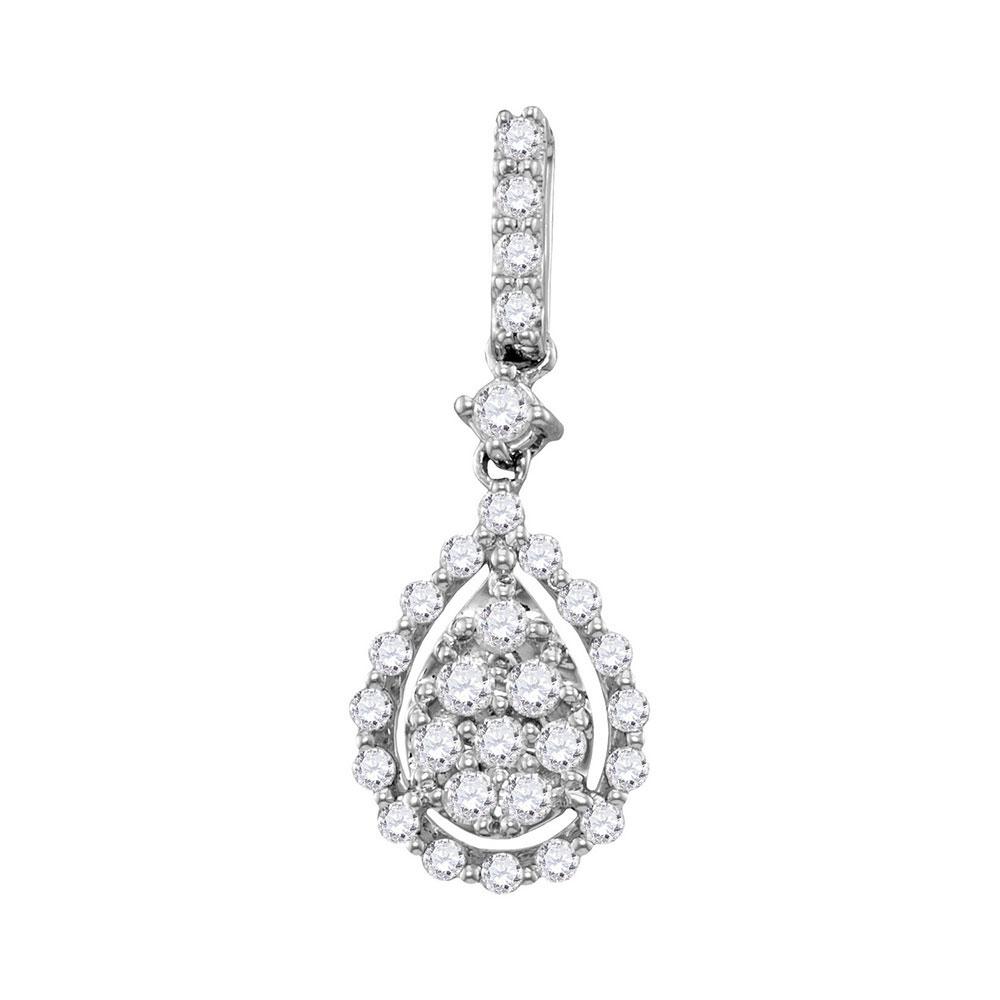 14kt White Gold Womens Round Diamond Cluster Pendant 1/2 Cttw