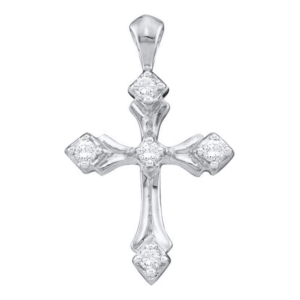 14kt White Gold Womens Round Diamond Cross Pendant 1/10 Cttw