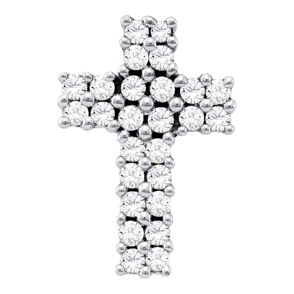 14kt White Gold Womens Round Diamond Cross Pendant 1/3 Cttw