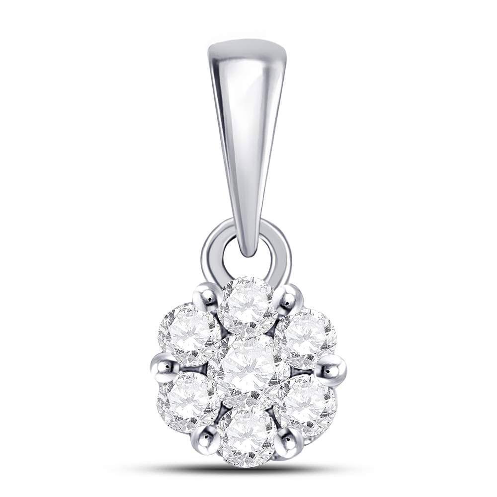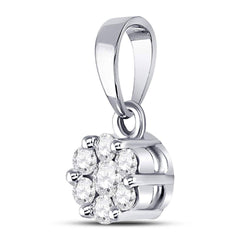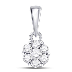 14kt White Gold Womens Round Diamond Flower Cluster Pendant 1/4 Cttw