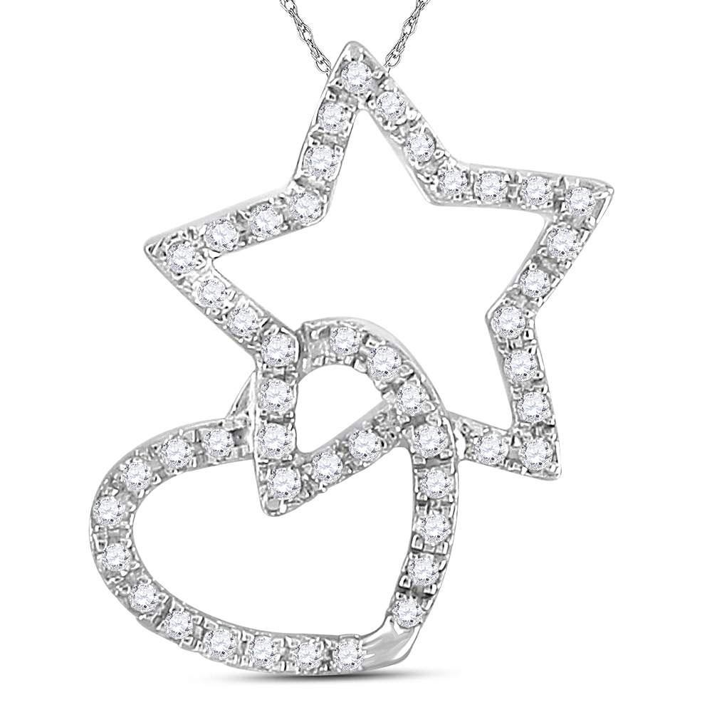14kt White Gold Womens Round Diamond Linked Star Heart Pendant 1/8 Cttw