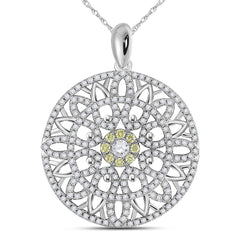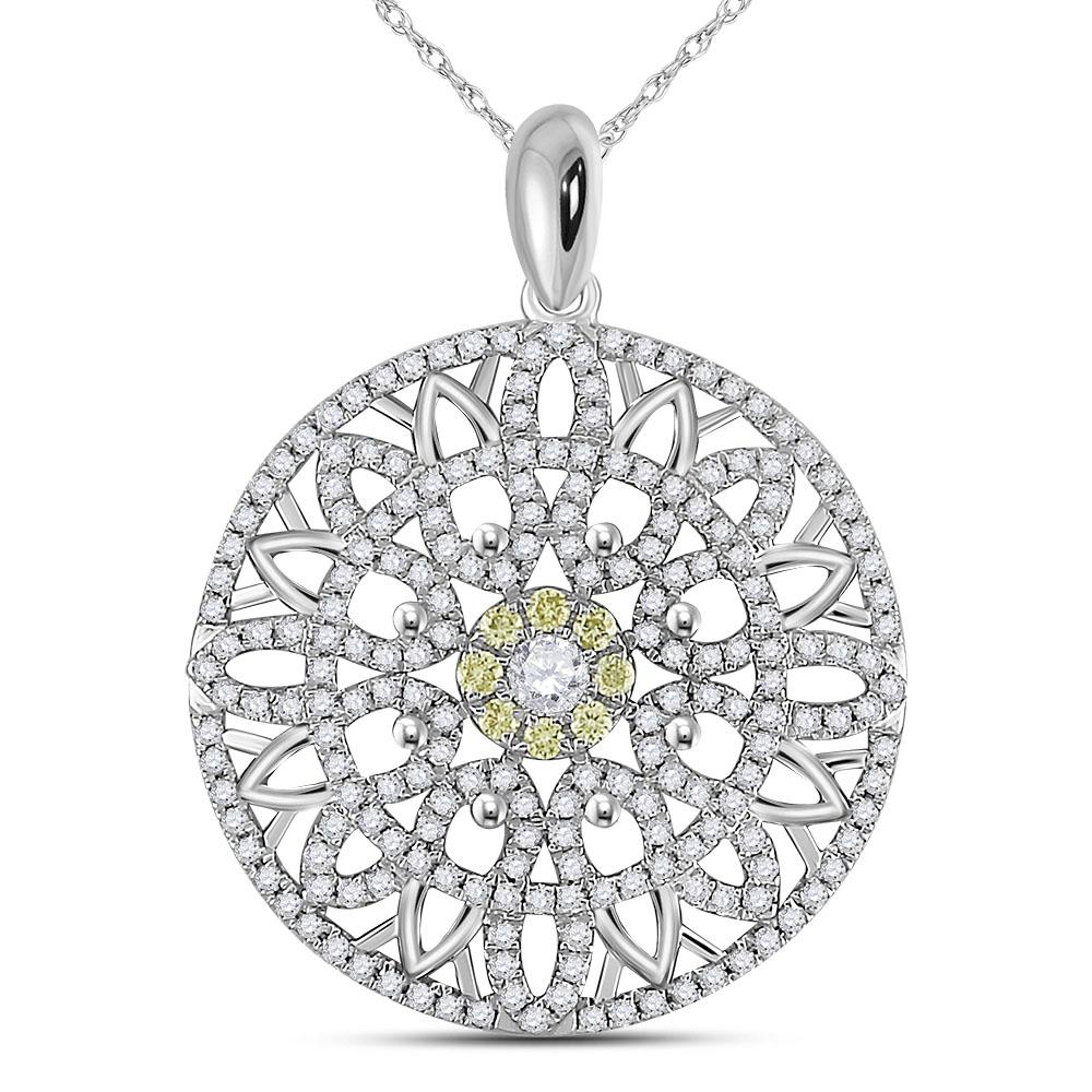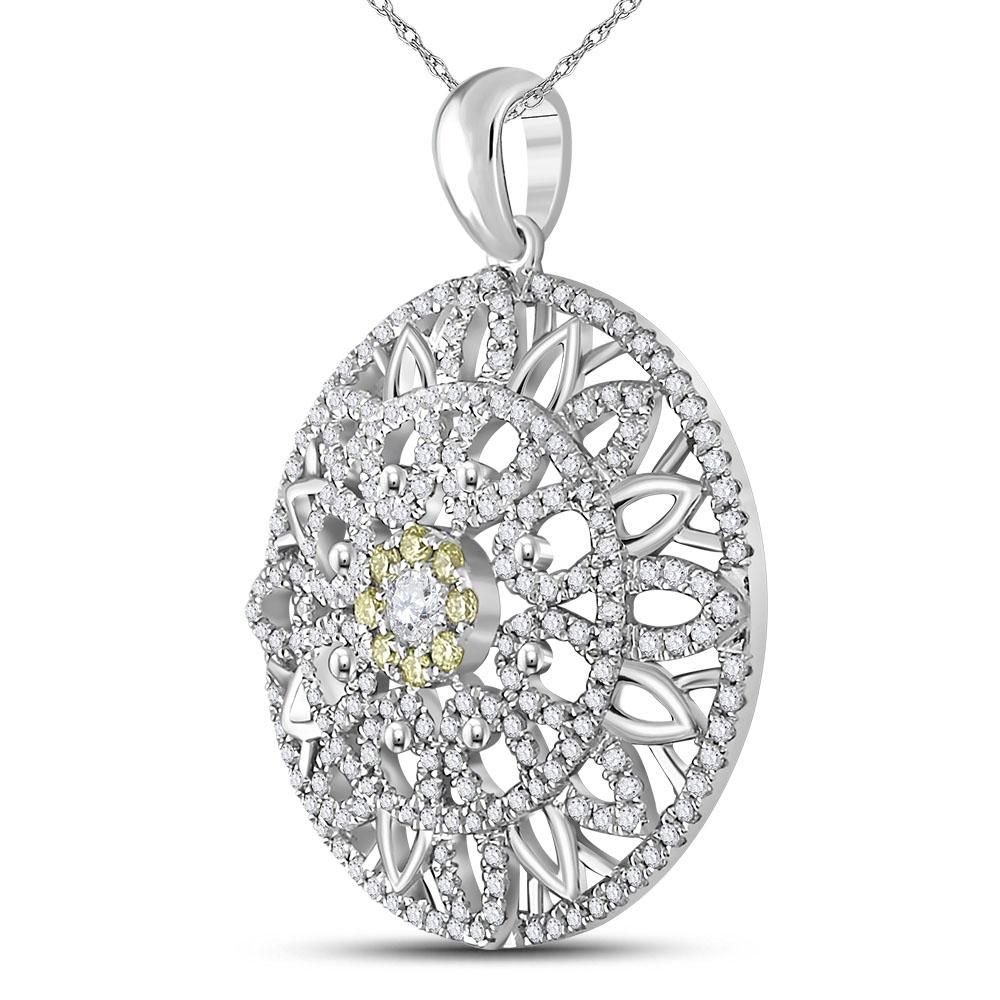14kt White Gold Womens Round Diamond Mandala Circle Pendant 1 Cttw