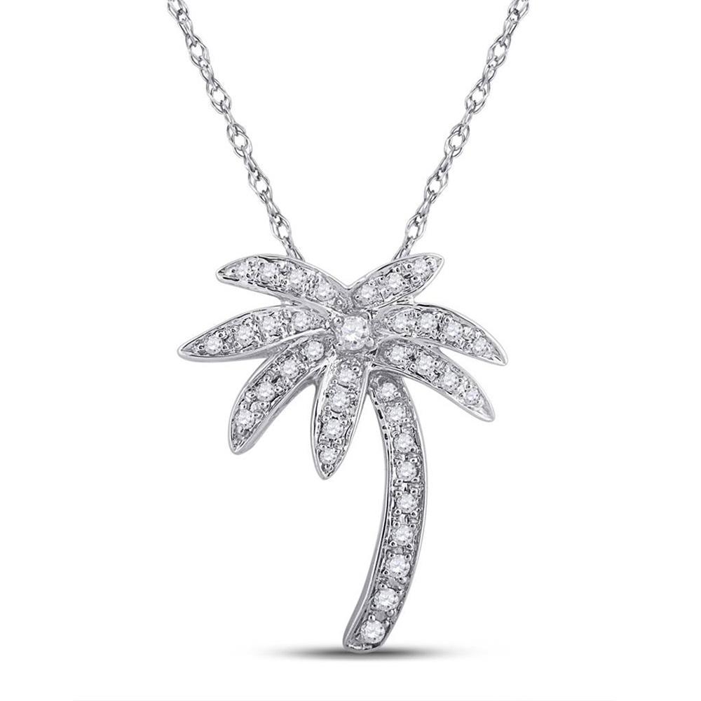 14kt White Gold Womens Round Diamond Palm Tree Nautical Beach Pendant 1/4 Cttw