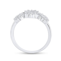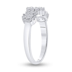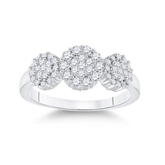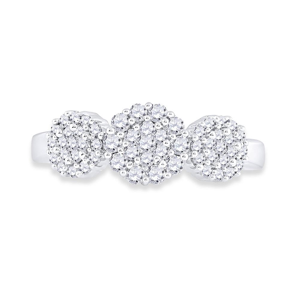 14kt White Gold Womens Round Diamond Triple Flower Cluster Ring 1/2 Cttw
