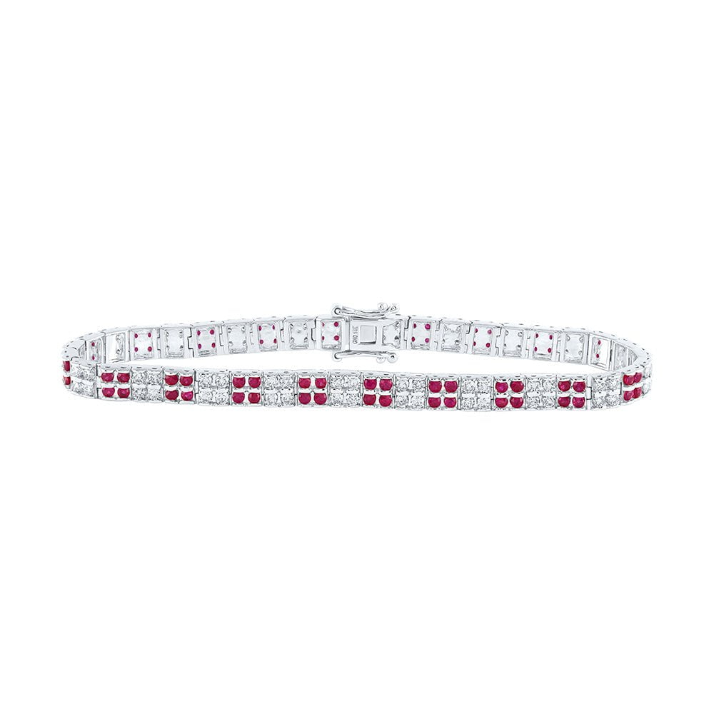 14kt White Gold Womens Round Ruby Diamond Tennis Bracelet 4-1/2 Cttw