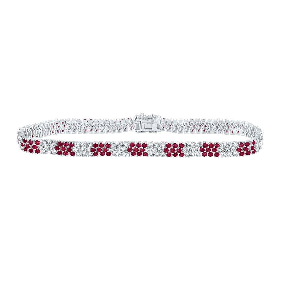 14kt White Gold Womens Round Ruby Diamond Tennis Bracelet 6-3/8 Cttw