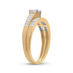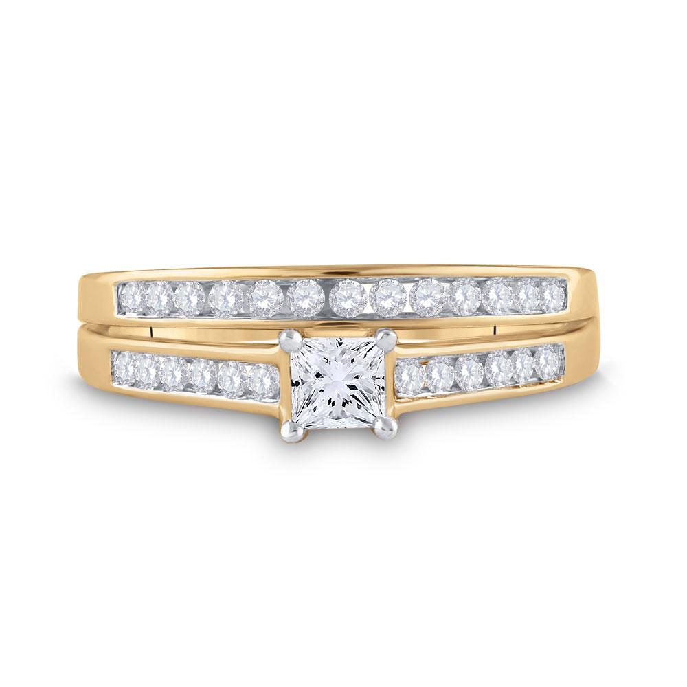 14kt Yellow Gold Princess Diamond Bridal Wedding Ring Band Set 1/2 Cttw