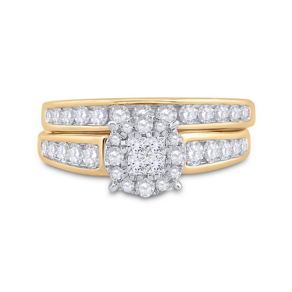 14kt Yellow Gold Princess Diamond Bridal Wedding Ring Band Set 1 Cttw