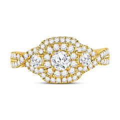 14kt Yellow Gold Round Diamond 3-stone Twist Bridal Wedding Engagement Ring 1 Cttw
