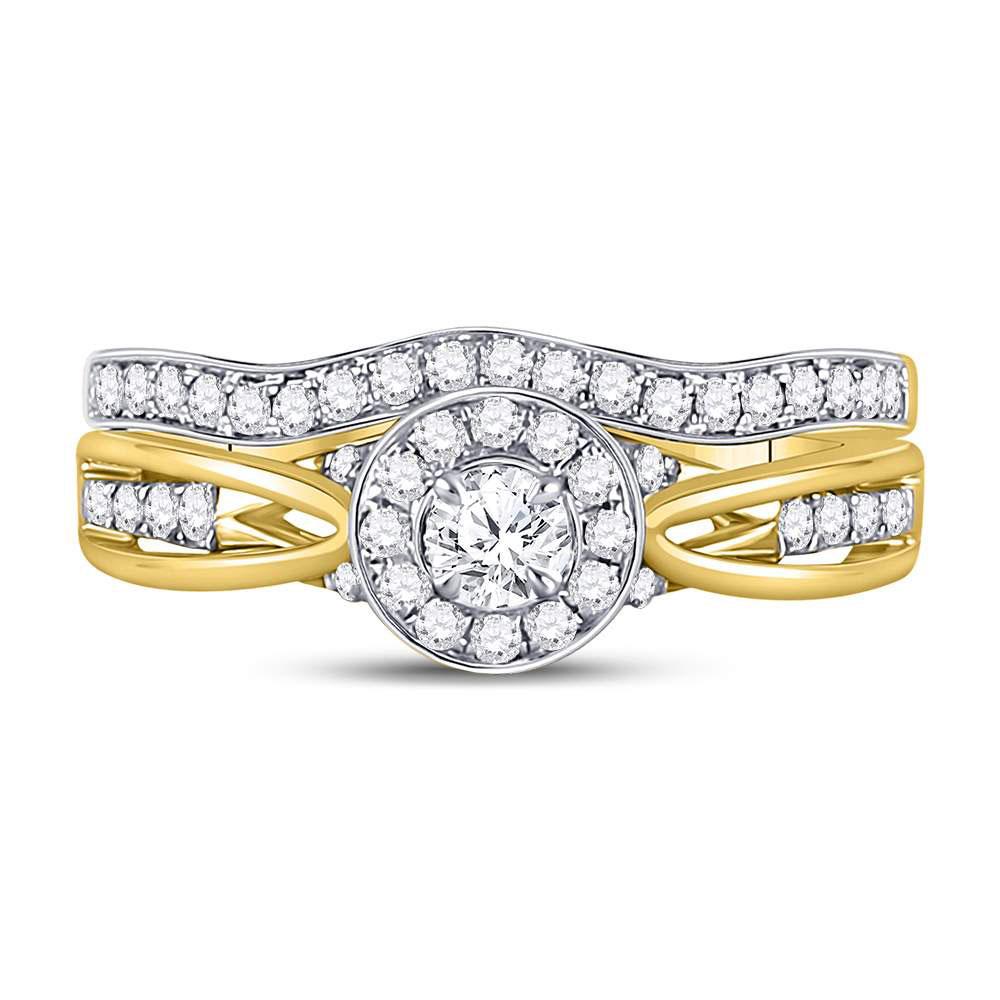 14kt Yellow Gold Round Diamond Bridal Wedding Ring Band Set 1/2 Cttw