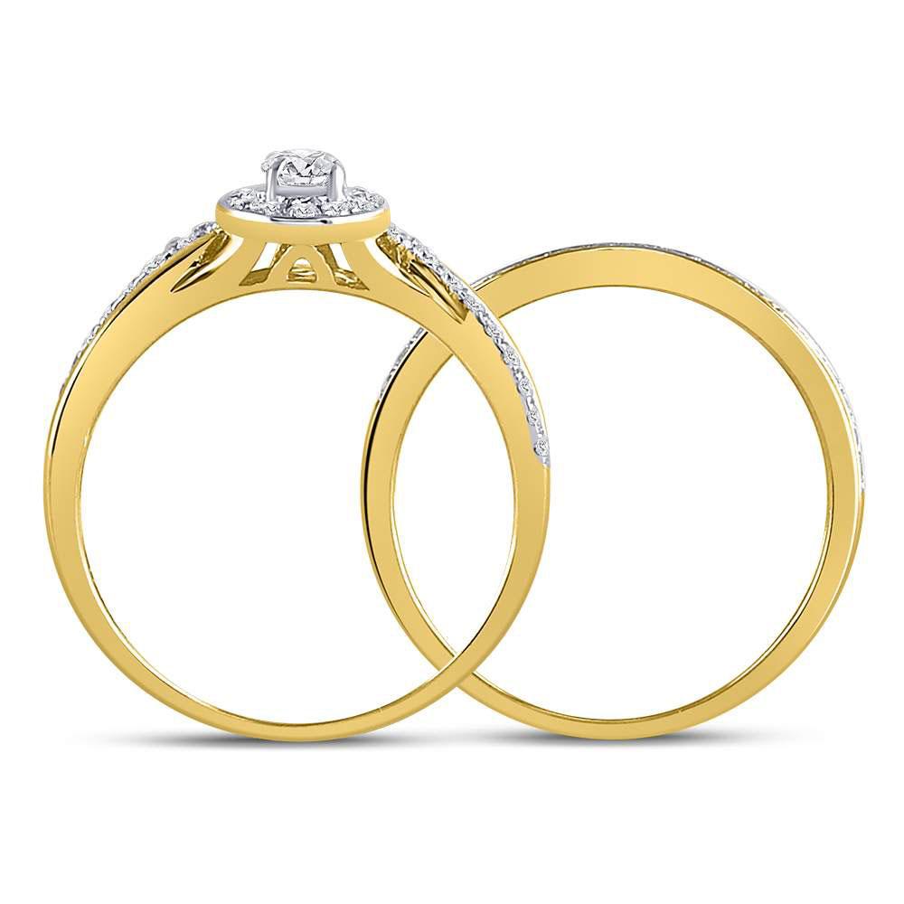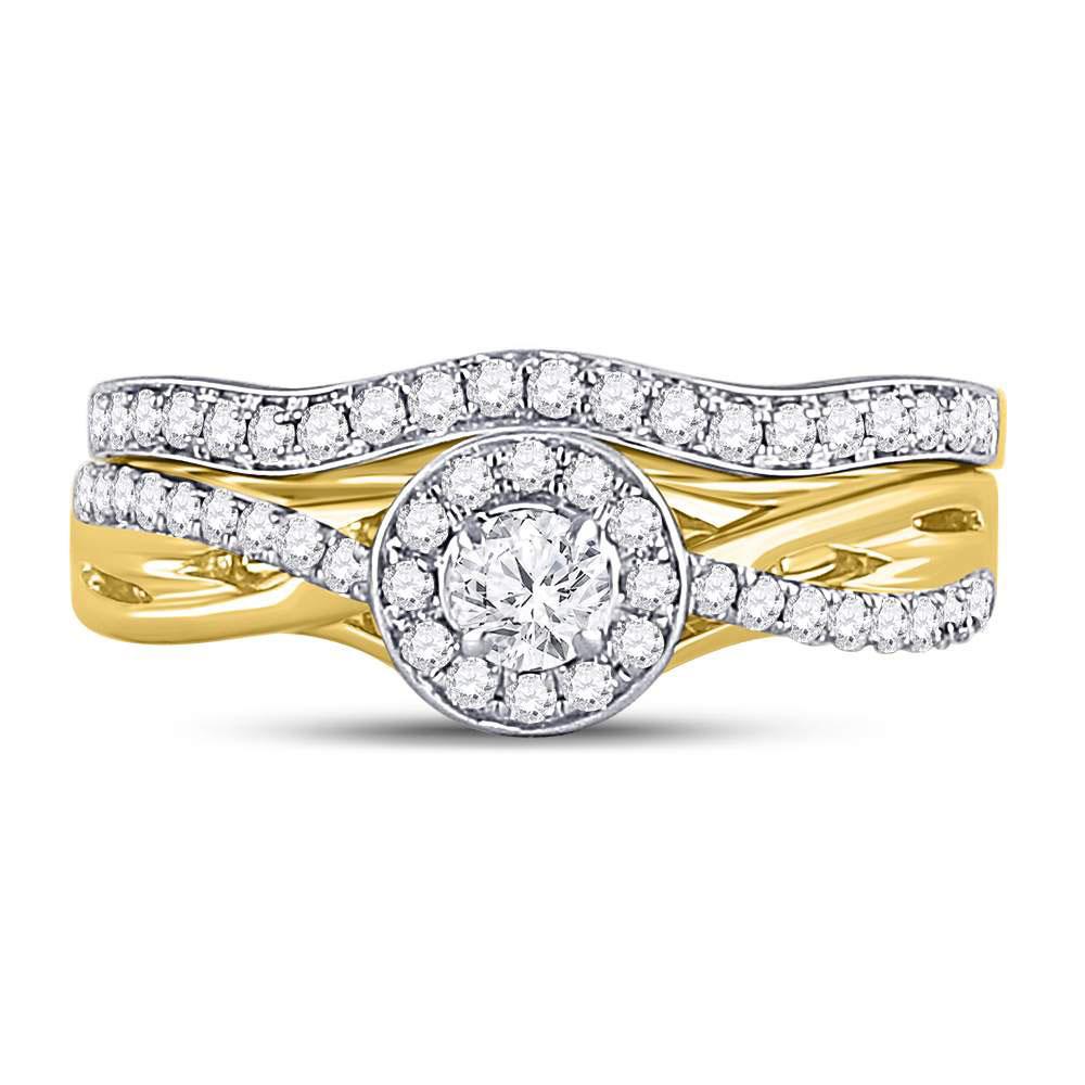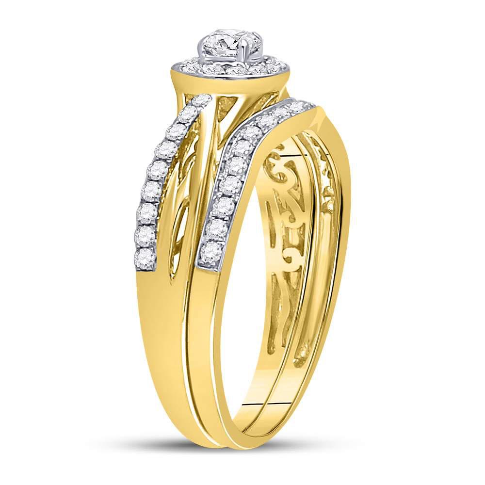 14kt Yellow Gold Round Diamond Bridal Wedding Ring Band Set 1/2 Cttw