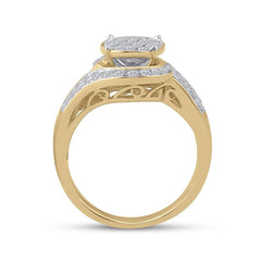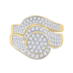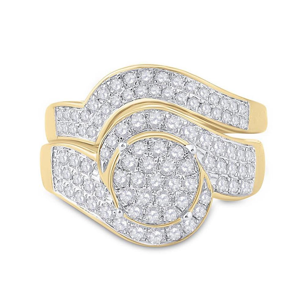 14kt Yellow Gold Round Diamond Cluster Bridal Wedding Ring Band Set 1 Cttw