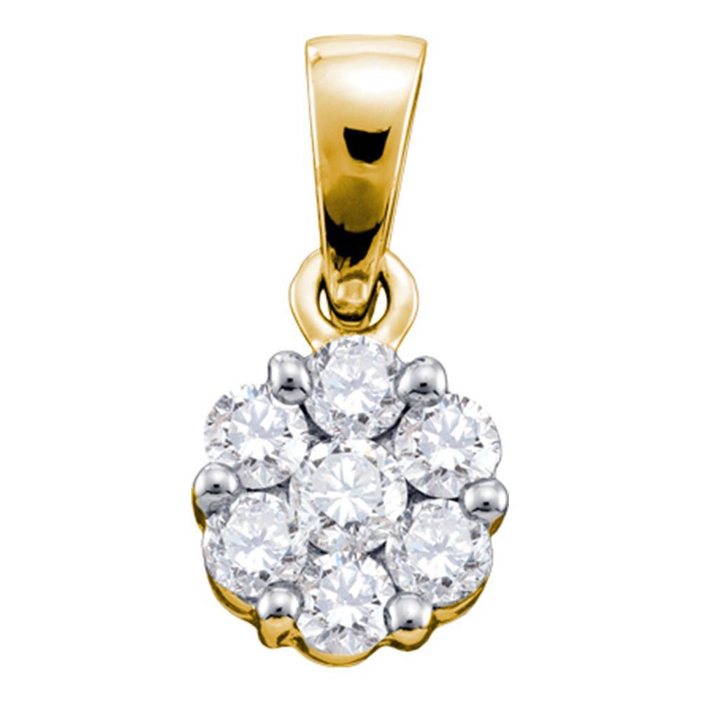 14kt Yellow Gold Womens Round Diamond Flower Cluster Pendant 1 Cttw