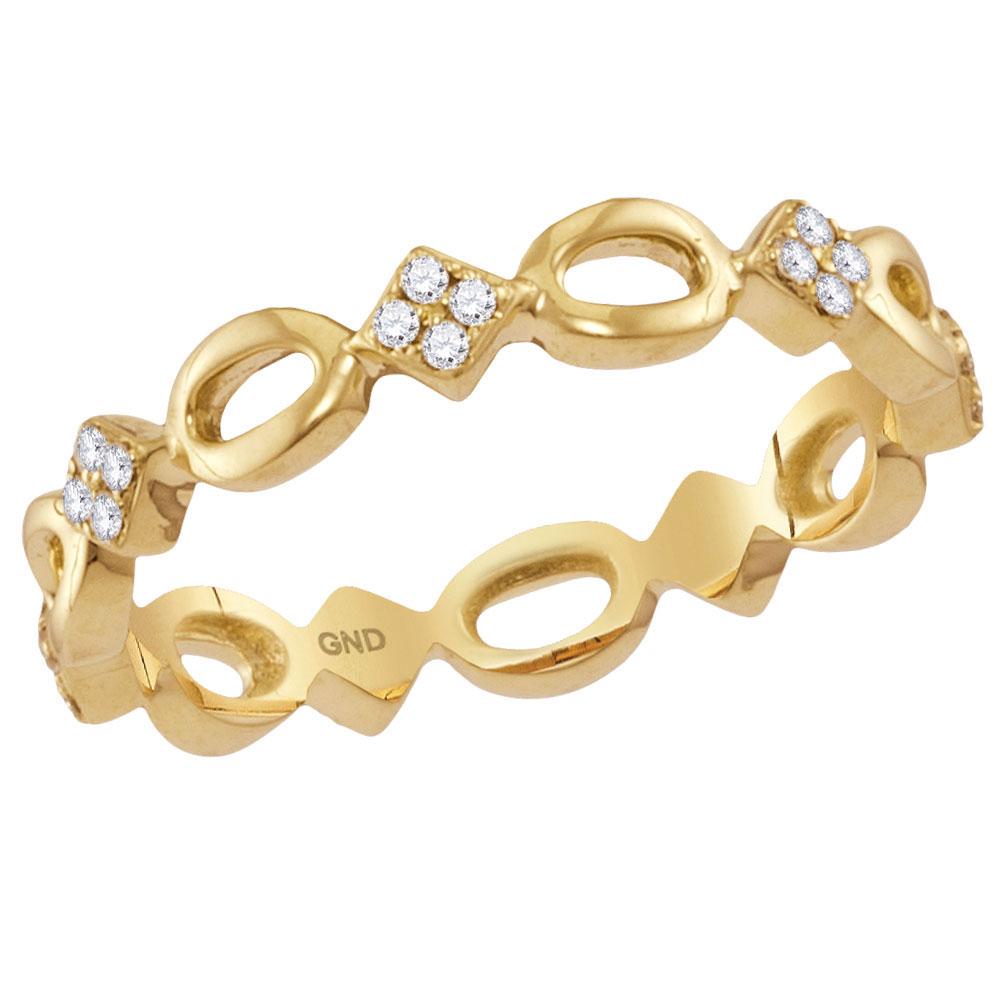 14kt Yellow Gold Womens Round Diamond Stackable Band Ring 1/8 Cttw