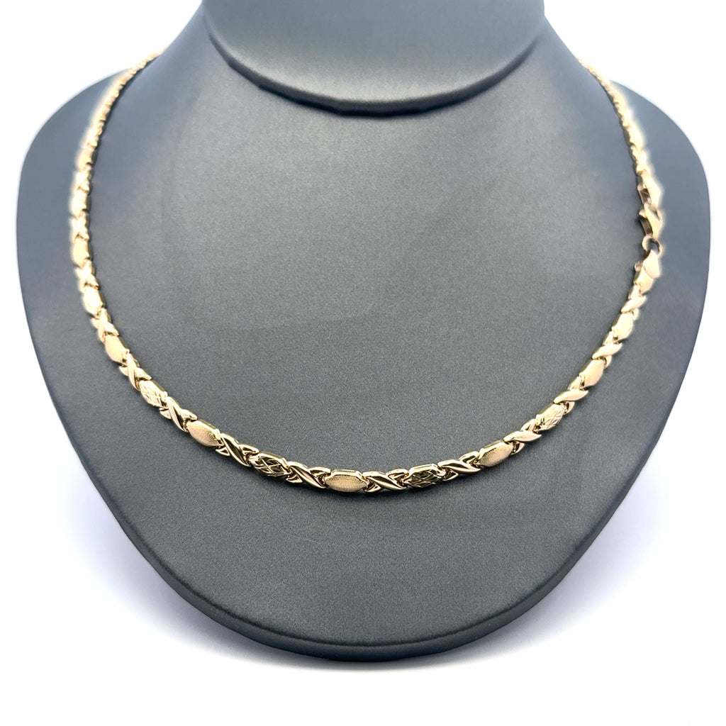 Elevate your style with this refined yellow gold chain. The intricately designed links create a delicate yet durable accessory, perfect for adding a touch of subtle luxury to any ensemble. Its smooth finish ensures comfortable wear, making it a versatile addition to your jewelry collection.