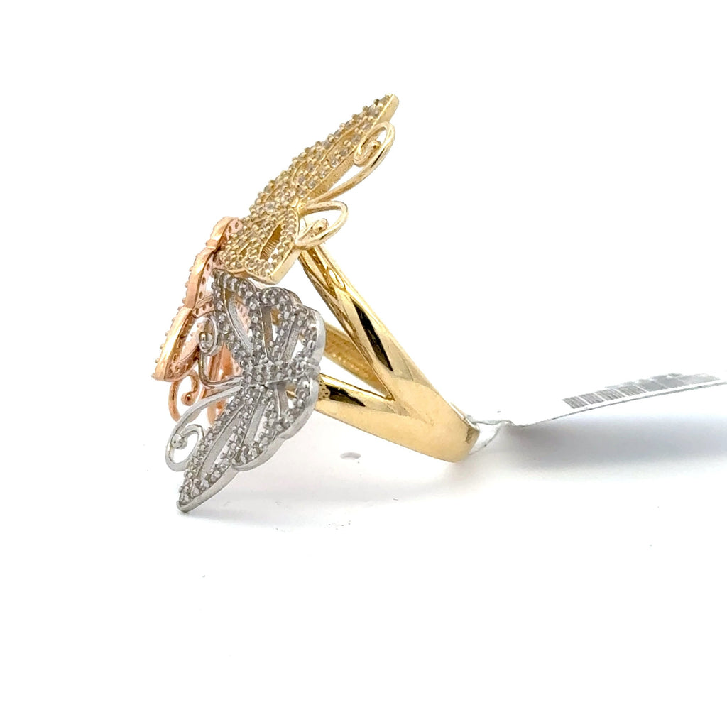 This stunning butterfly ring set features intricate designs in three beautiful finishes: gold, rose gold, and silver. Each ring is adorned with sparkling stones that catch the light, making it a perfect accessory for any occasion. Wear them together for a bold statement or individually for a more subtle look.