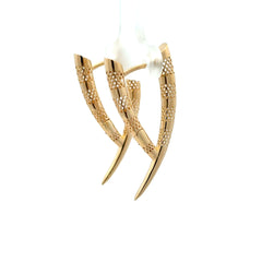 Discover the allure of these elegant gold earrings, designed to elevate any outfit. Their intricate detailing and sleek silhouette make them a perfect accessory for both casual and formal occasions. Crafted with precision, these earrings are a timeless addition to your jewelry collection.