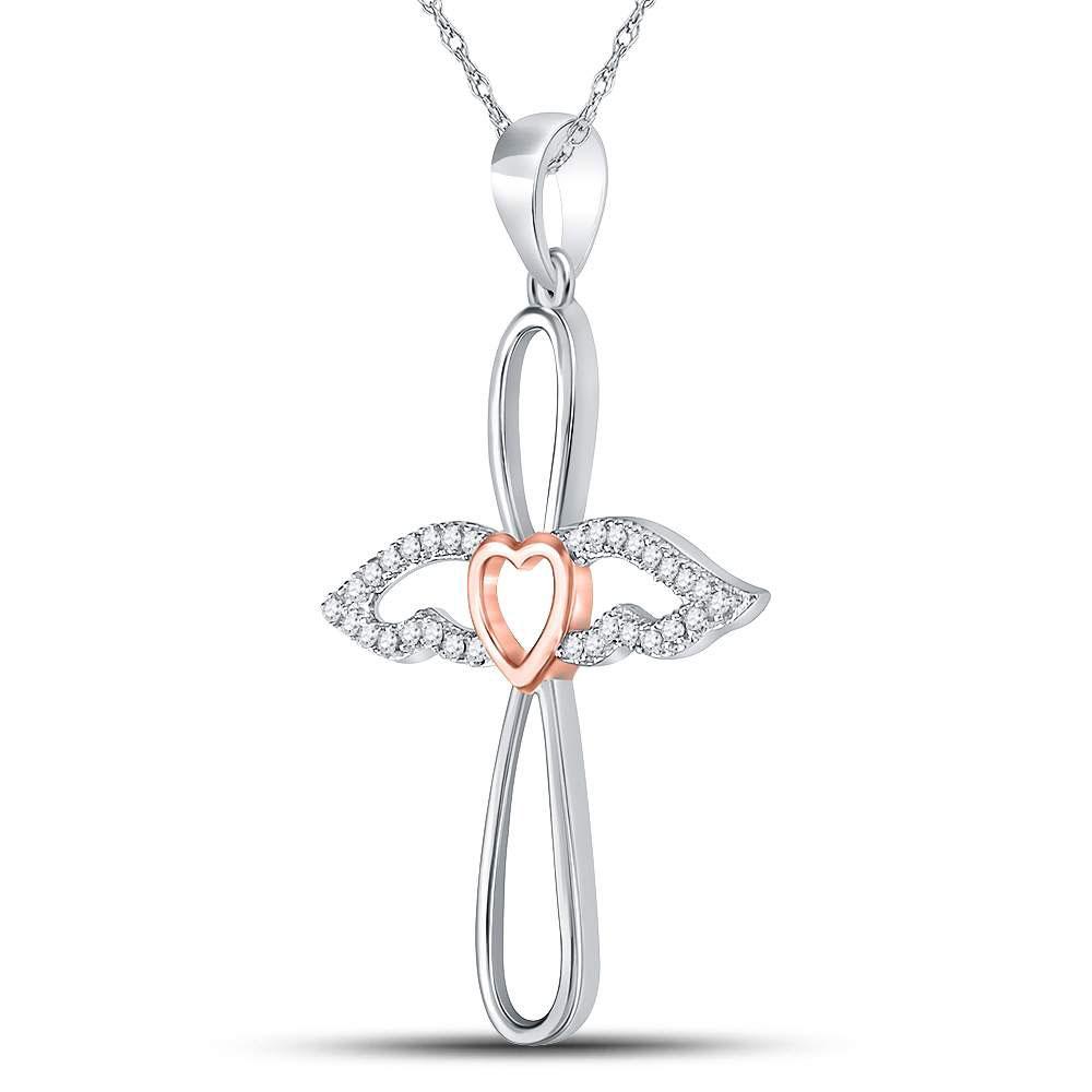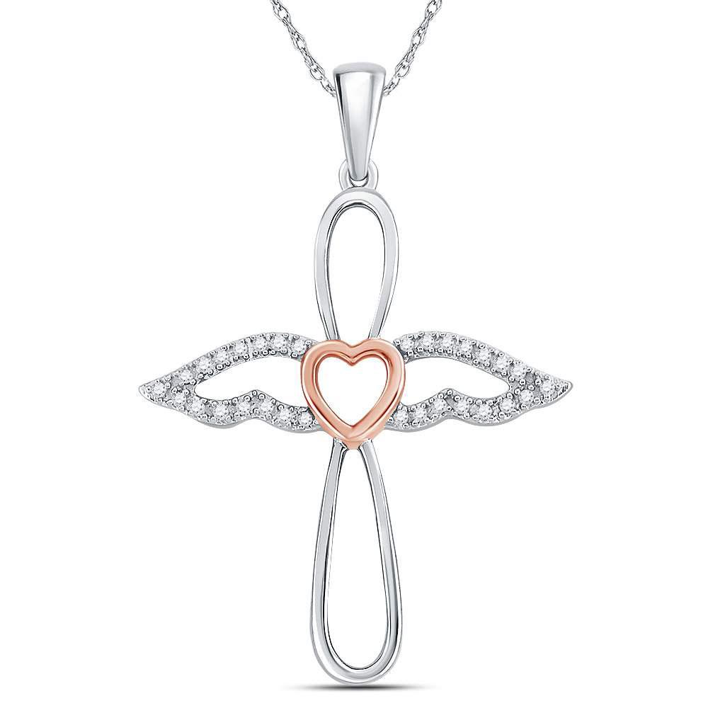 Sterling Silver Rose-tone Womens Round Diamond Angel Cross Pendant 1/8 Cttw