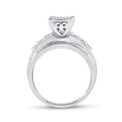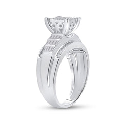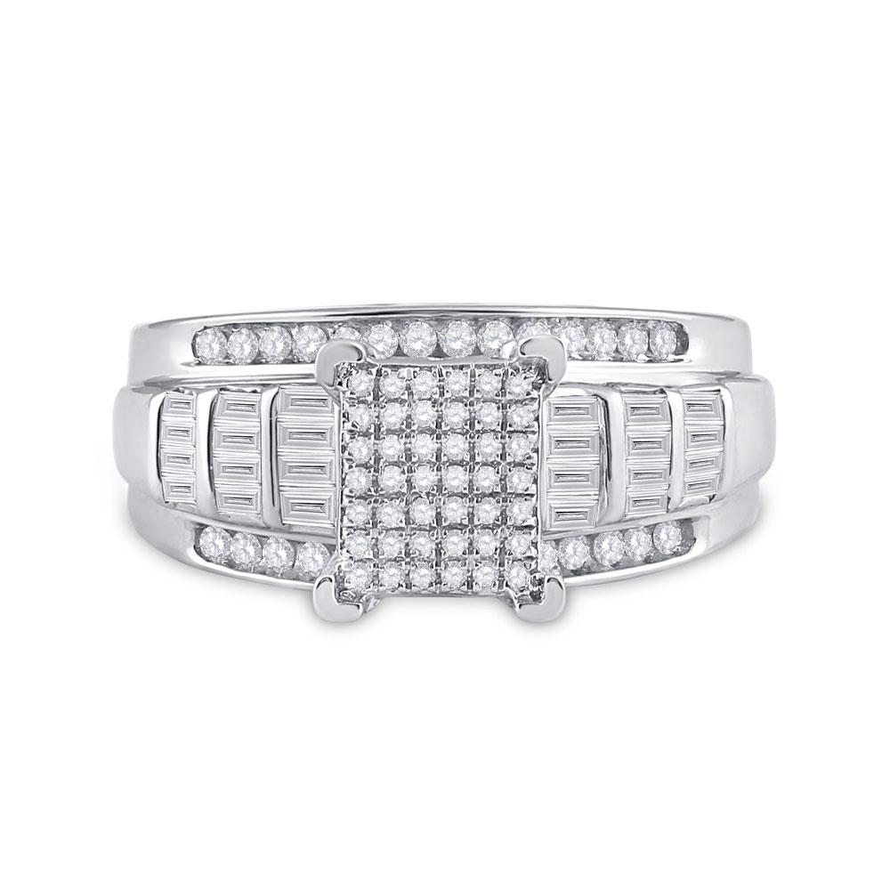 Sterling Silver Round Diamond Cluster Bridal Wedding Engagement Ring 5/8 Cttw