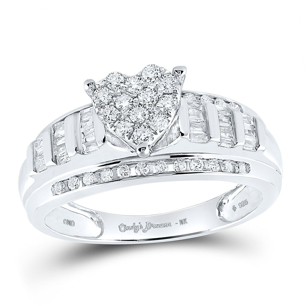 Sterling Silver Round Diamond Heart Bridal Wedding Engagement Ring 1/2 Cttw