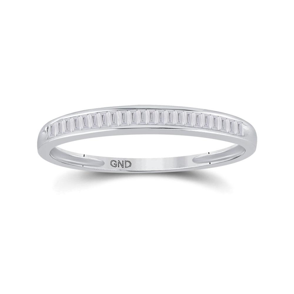 Sterling Silver Womens Baguette Diamond Wedding Anniversary Band Ring 1/6 Cttw