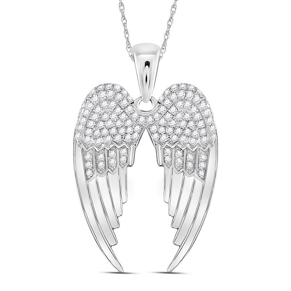 Sterling Silver Womens Round Diamond Angel Wings Pendant 3/8 Cttw
