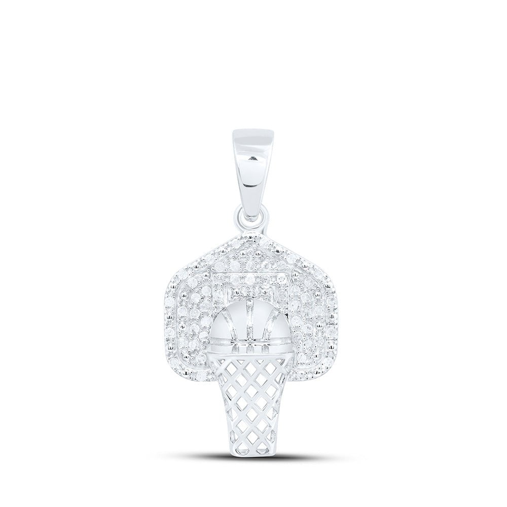 Sterling Silver Womens Round Diamond Basketball Hoop Fashion Pendant 1/3 Cttw