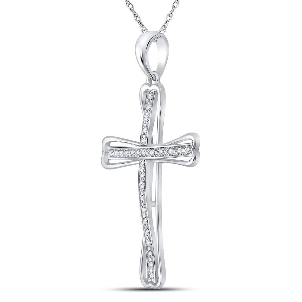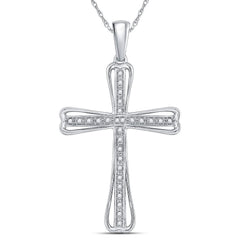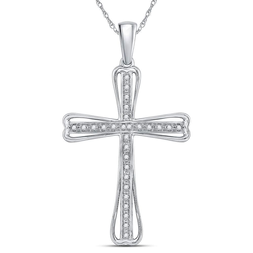 Sterling Silver Womens Round Diamond Cross Pendant 1/10 Cttw
